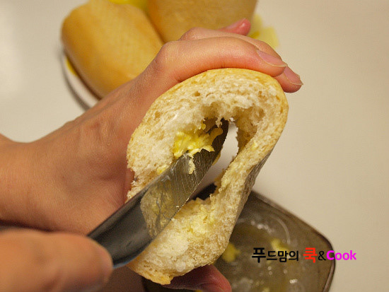 오늘은 바게트의 가운데를 갈라 속을 파내고